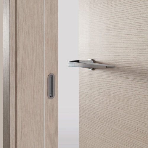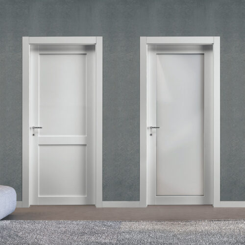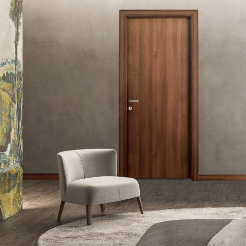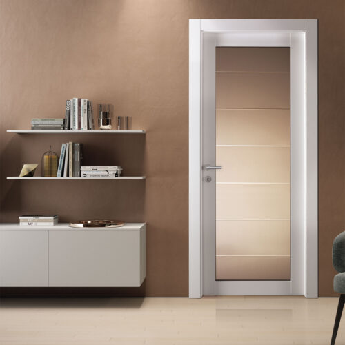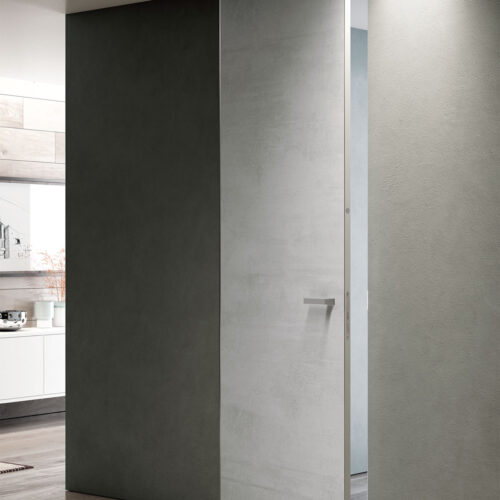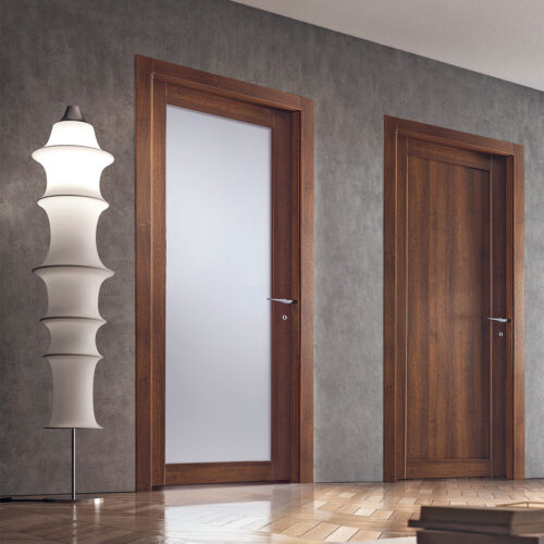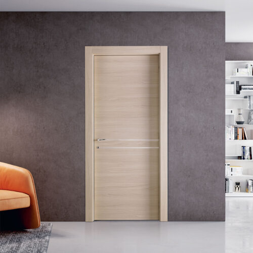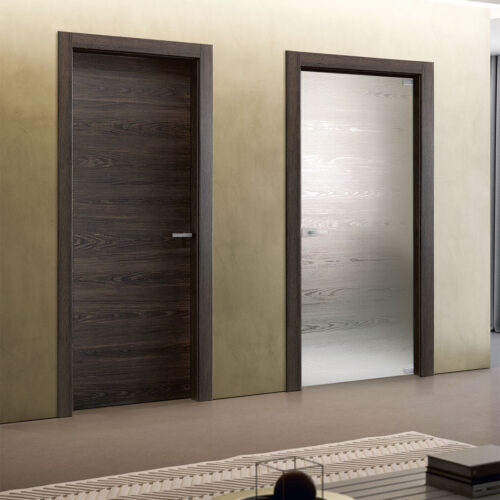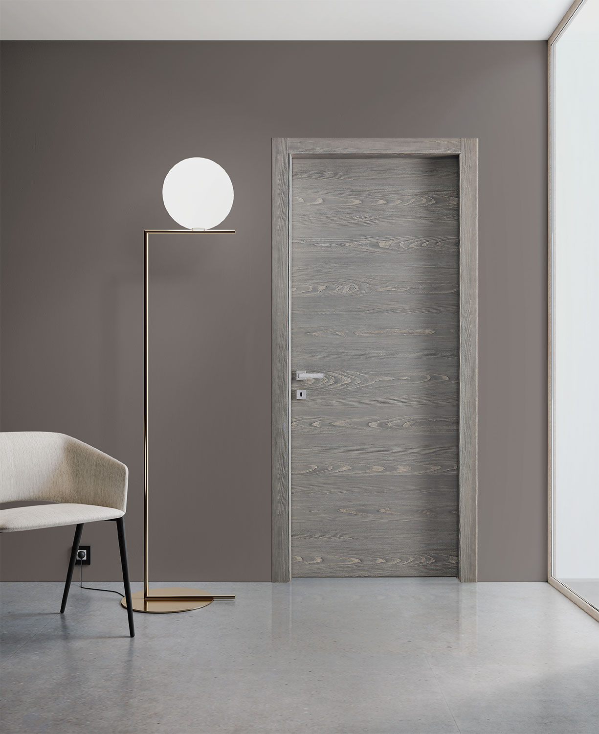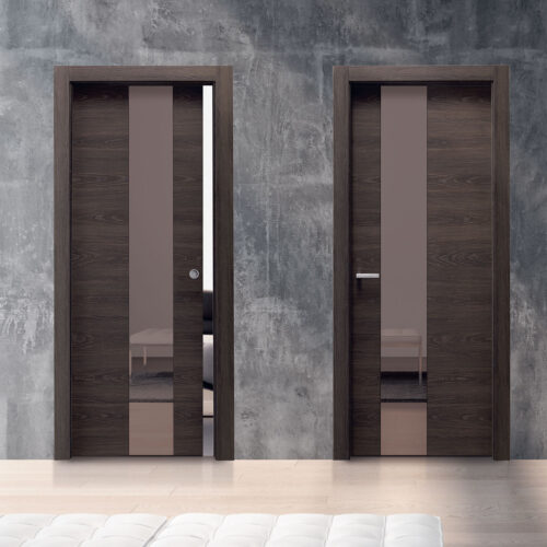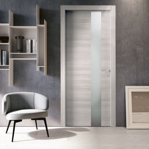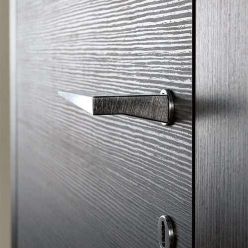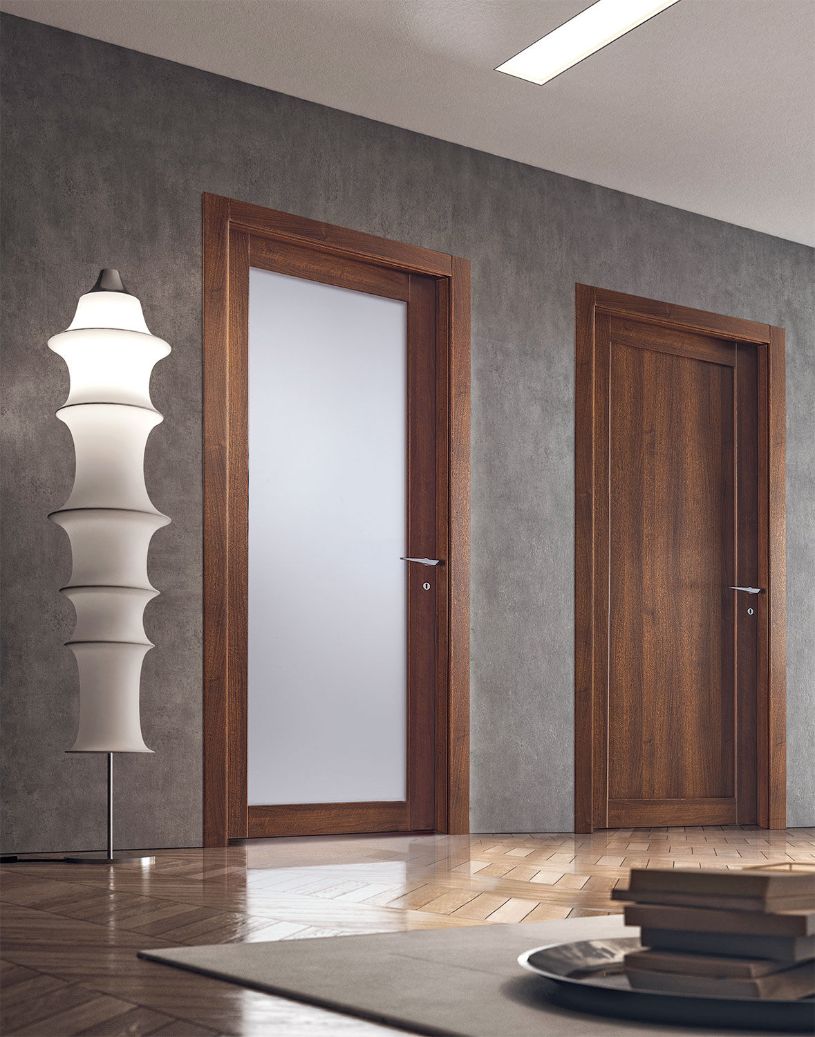 Završna obrada sa nježnom strukturom drva dostupna u pet suvremenih boja, s umetcima od drva, aluminija ili stakla. Kolekciju nadopunjuju nova staklena vrata, izrađena staklenim krilom i aluminijskim profilom obloženim grafitnom završnom obradom. Vrata imaju standardnu vrhunsku opremu: skrivene šarnire, magnetnu bravu, okvir i obloge od vodootpornog materijala.