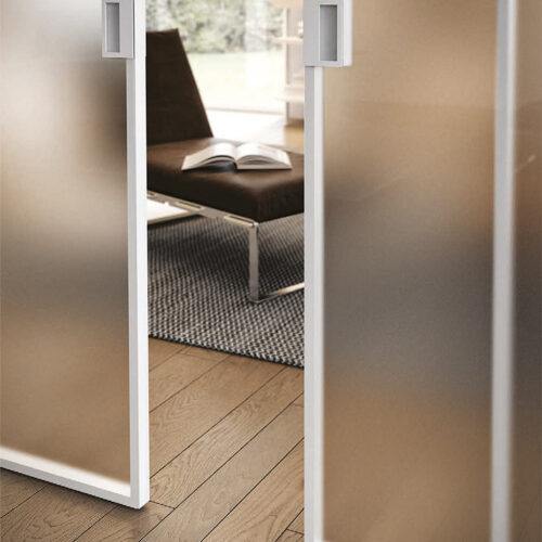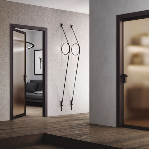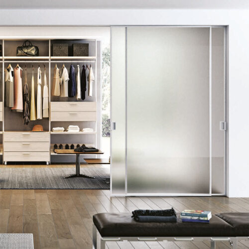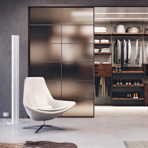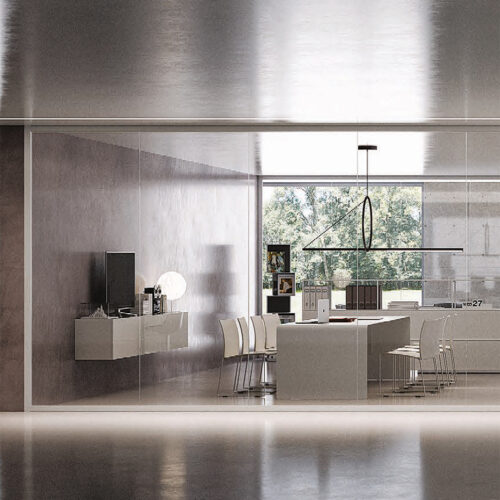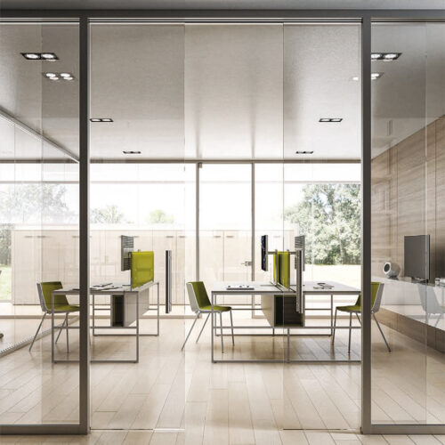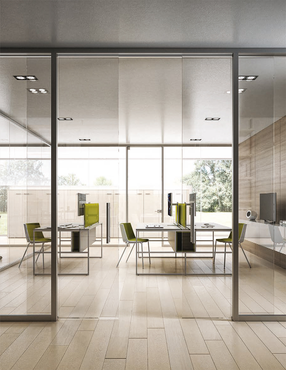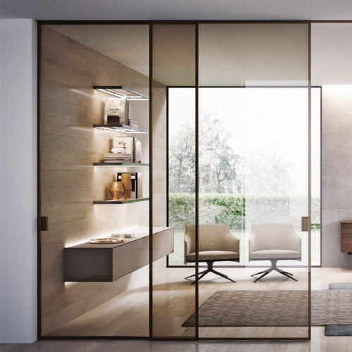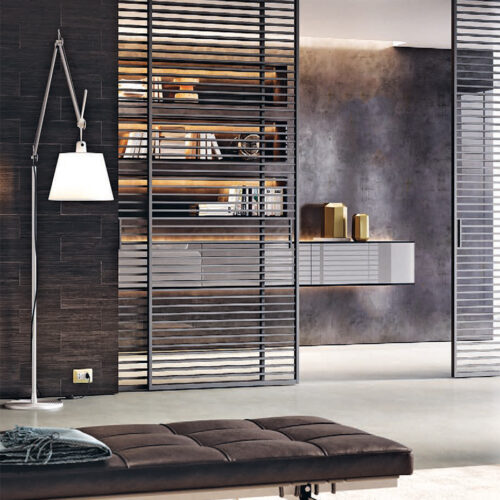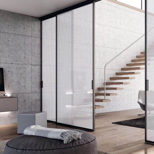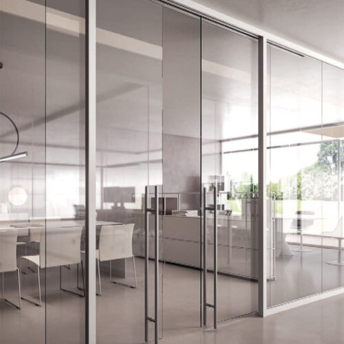 Vrata i zidovi od stakla i aluminija za elegantno dijeljenje i ujedinjavanje prostora u potrazi za maksimalnom fleksibilnošću suvremenog života. Zaokretna vrata, klizna unutar ili mimo zida sa stropnom ili podnom vodilicom, cjelovit program prijedloga u kojem su glavni akteri staklo, njegove boje i obrade te elegantni aluminijski profili.