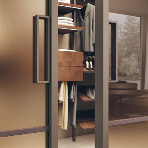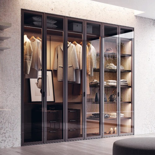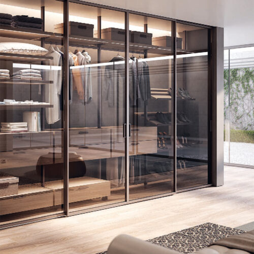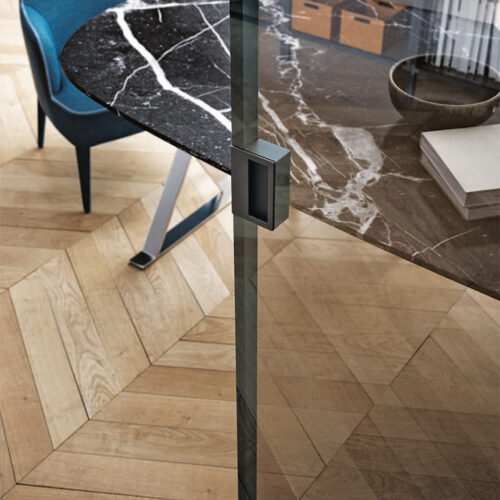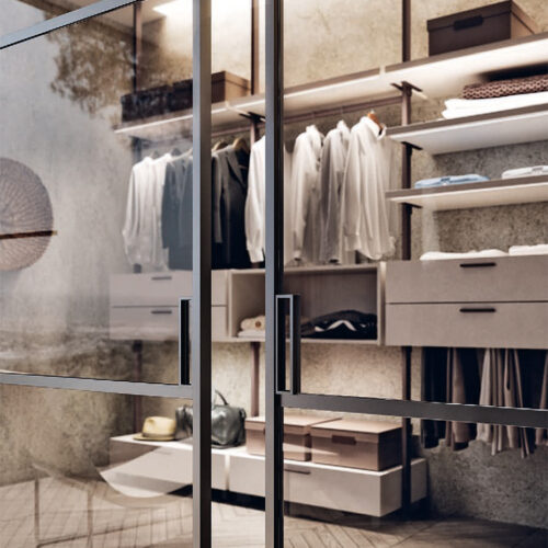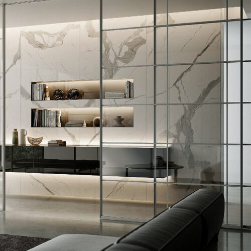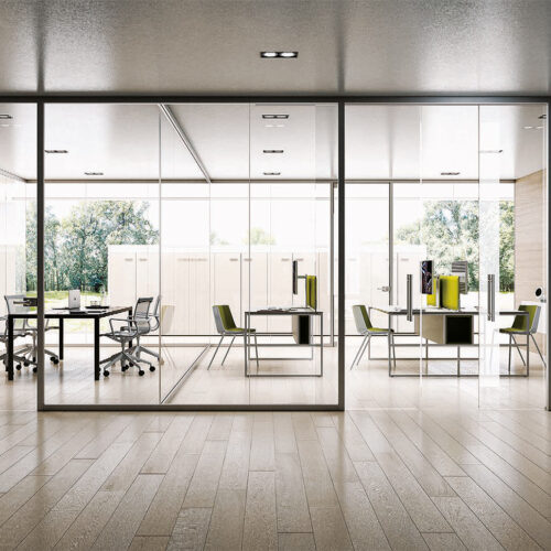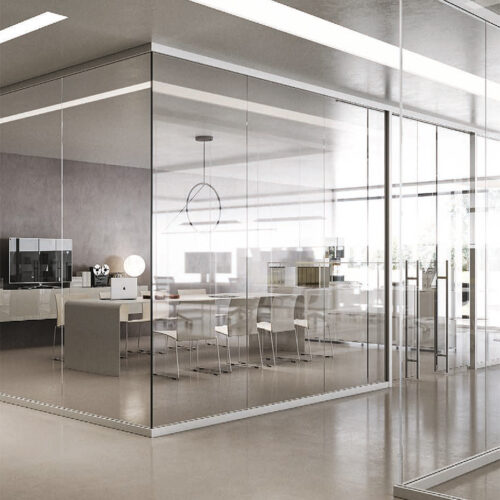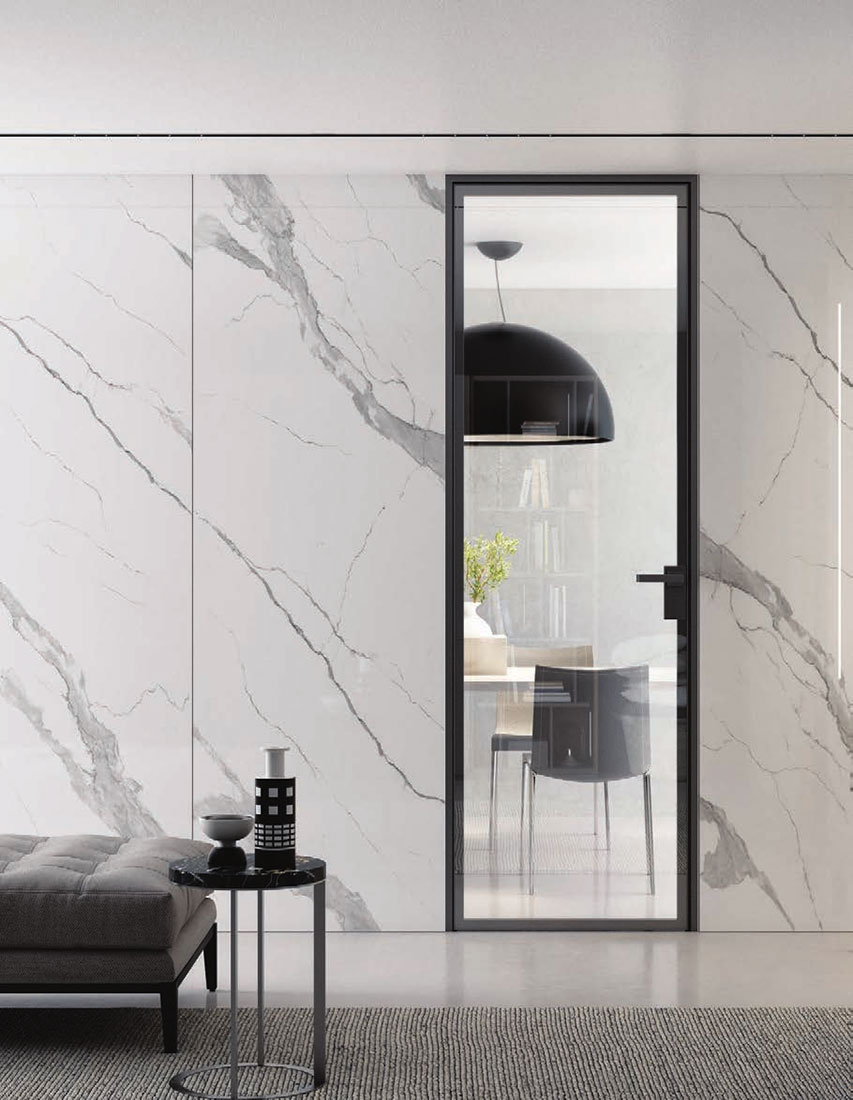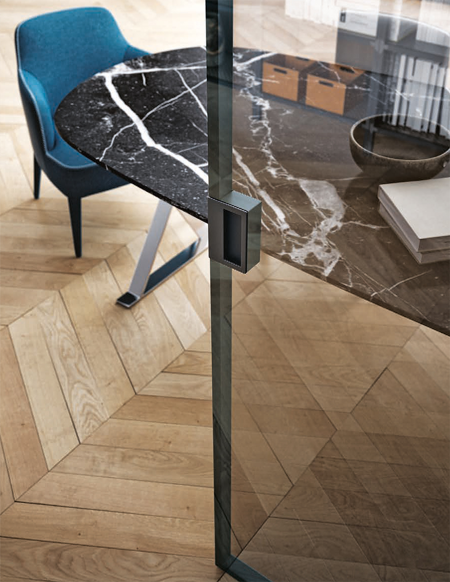 Vrata i zidovi od stakla i aluminija za elegantno dijeljenje i ujedinjavanje prostora u potrazi za maksimalnom fleksibilnošću suvremenog života. Zaokretna vrata, klizna unutar ili mimo zida sa stropnom ili podnom vodilicom, cjelovit program prijedloga u kojem su glavni akteri staklo, njegove boje i obrade te elegantni aluminijski profili.
