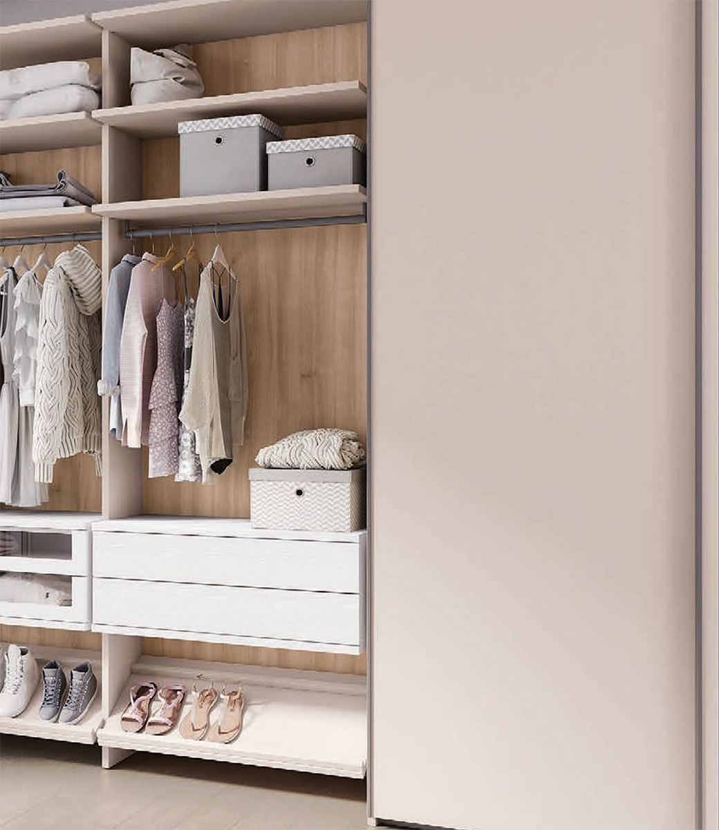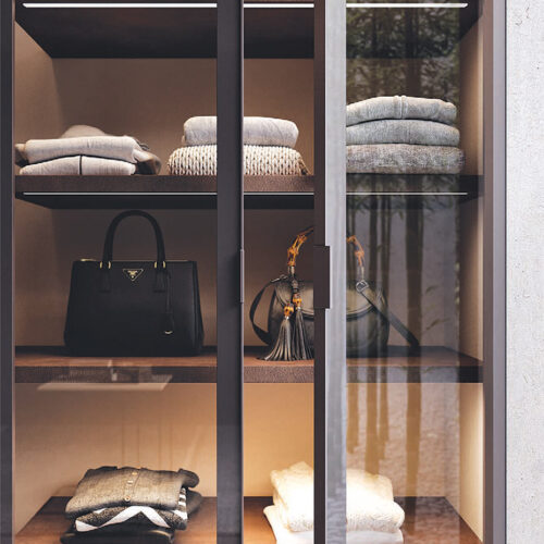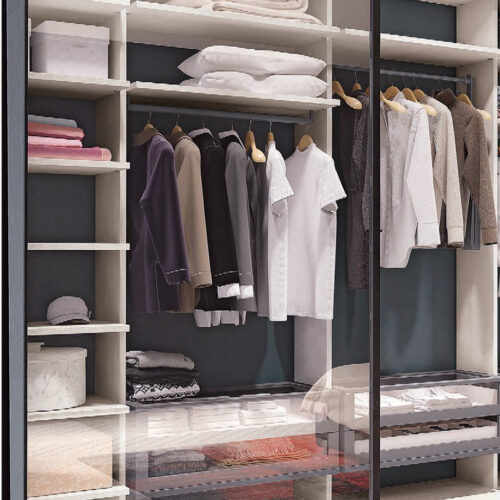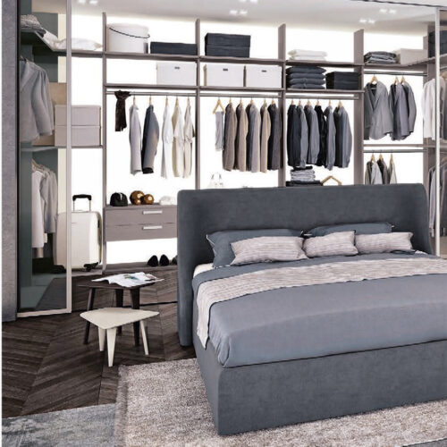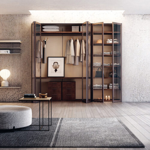 Kolekcija Sistemi di Design nudi ekskluzivnu garderobu SpaceWall s dva para sklopivih vrata koja nude open space prostor bez unutarnjih stranica, koji se može slobodno opremiti.