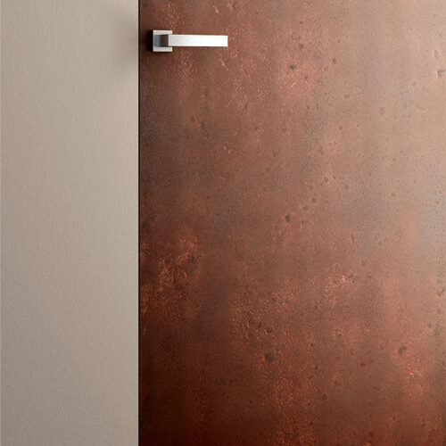 Vrata Surface Metalli s minimalnim linijama, pokazuju karakter s neviđenim završnim obradama metala: željezo, bakar, bronca, mesing i kositar, u visoko sjajnoj ili oksidiranoj verziji ova vrata čini jedinstvenima, a svaki proizvod posebnim.