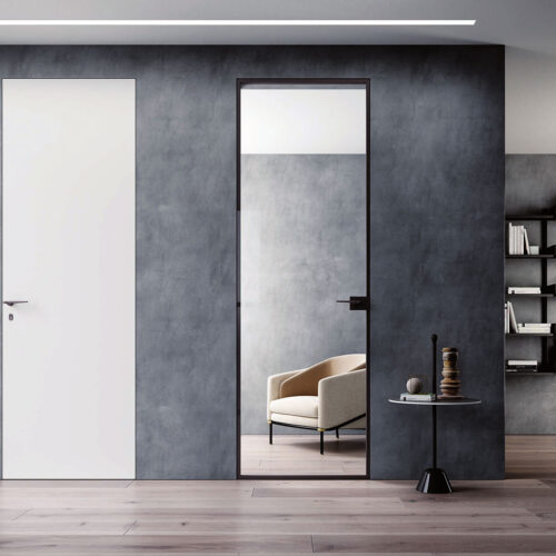 Ovaj najsuvremeniji i minimalni dizajn se odlikuje elegancijom, inovativnom estetikom kao i maksimalnom prilagodbom u izboru završnih obloga, obrada, dimenzija i vrste otvaranja. Vrata se sastoje od aluminijskog okvira, ugrađenog u zidanu ili gips ploču, koji se može bojati poput zida i vratnog krila sa skrivenim šarnirima i magnetnom bravom. Vratno krilo može biti lakirano mat ili visoki sjaj, furnirano ili završno obrađeno temeljnim premazom spremno za završno bojanje.