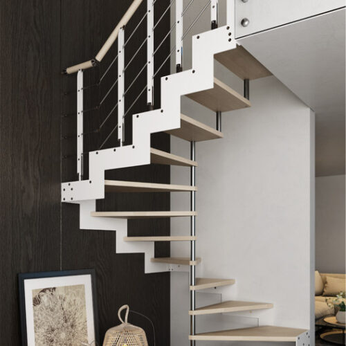 Spiral Daisy je metalno spiralno stubište četvrtastog tlocrta sa samonosivom bočnom uzicom i središnjim stupićem, prilagođeno dizajniranim prema potrebama kupca.