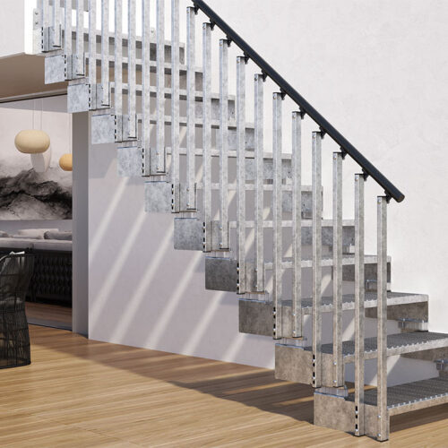Composity Zink je vanjsko željezno stubište dizajnirano za povezivanje dva kata s vanjskim pristupom. Konstrukcija i ograda izrađeni su od čelika zaštićenog cinkovom kupkom, što ih čini posebno čvrstim i otpornim, vijci su izrađeni od nehrđajućeg čelika za vanjsku upotrebu.