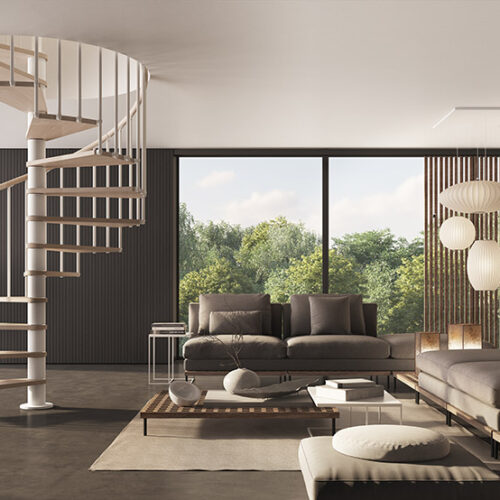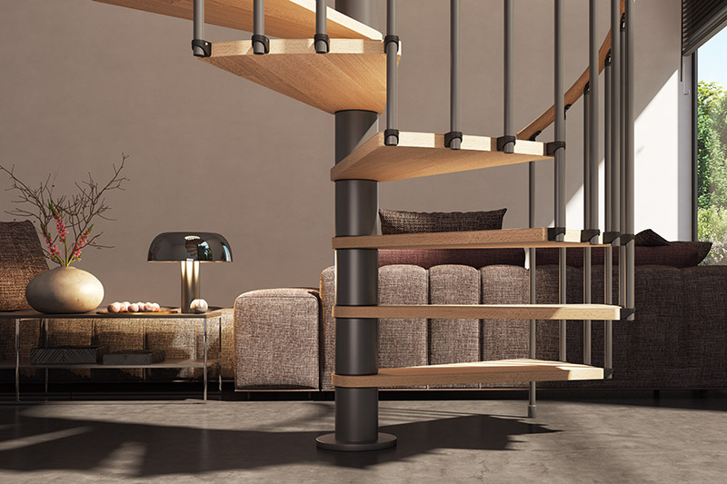 Phola je modularno spiralno stubište koje kombinira toplinu punog drveta s čvrstoćom čelika nudeći mnoštvo kombinacija promjera i završnih obloga.