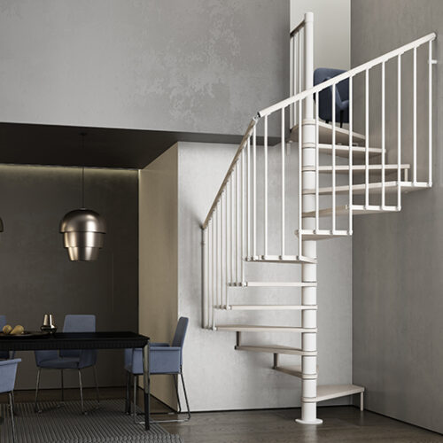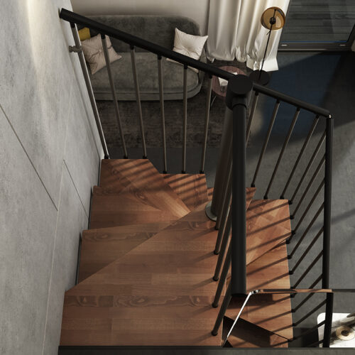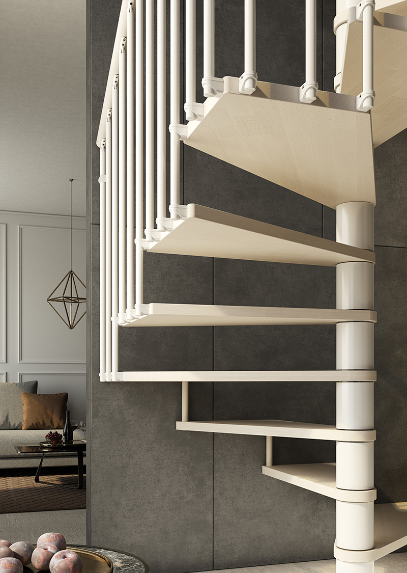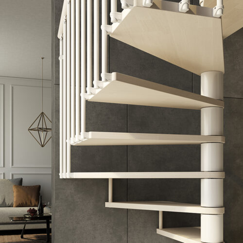 Tekla je četvrtasto spiralno stubište kvadratnog tlocrta savršeno za ugradnju između dva ili više zida. Oblik gazišta je posebno dizajniran kako bi se najbolje iskoristio sav raspoloživ prostor praktičnim i funkcionalnim rješenjem.
