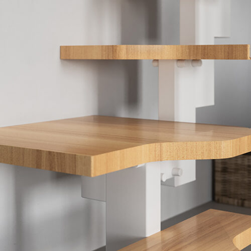 Mini je stubište koje štedi prostor, s naizmjenično posebno oblikovanim gazištima omogućuje maksimalno iskorištavanje prostora. Gazišta su izrađena iz bukovog masiva i mogu se prilagoditi raznim željama zahvaljujući brojnim dostupnim bojama.